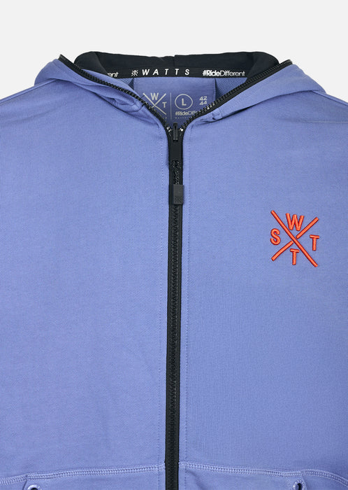 Sa fermeture zippée intégrale jusqu’en haut de la capuche souligne son caractère contemporain. Poches avant esprit kangourou, bords-côtes ajustés, broderie logo 3D, écusson manche et étiquette WATTS viennent structurer l’ensemble avec précision.