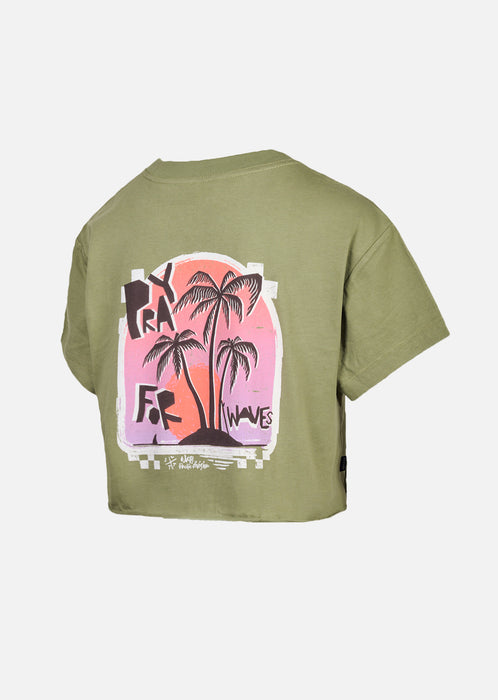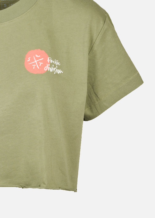 Craquez pour le Crop t-shirt CARMEL en coloris OLIVE, une pièce moderne qui mixe attitude street et esprit estival. Sa teinte naturelle et facile à associer sublime vos looks, du jean taille haute au short casual.