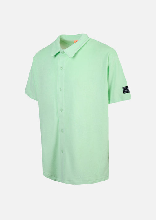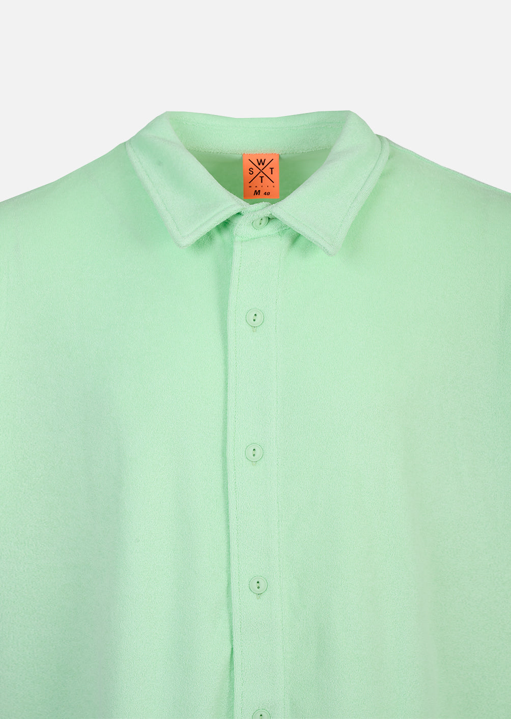 Vielseitig und stilvoll lässt sich dieses pastellgrüne Hemd leicht mit einer hellen Jeans, einer Cargohose oder einer Leinen-Shorts kombinieren, für einen maskulinen Look, der sowohl entspannt als auch modern ist. Ideal für Wochenenden, Treffen mit Freunden oder Spaziergänge am Wasser, verkörpert es perfekt die Balance zwischen Streetwear, Surfwear und frühlingshafter Frische.