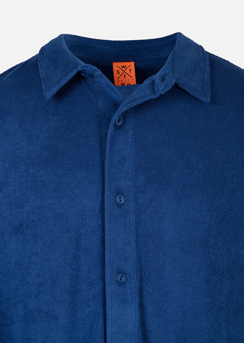 Subtile Details verleihen diesem Hemd den letzten Schliff: Die sechs Knöpfe auf der Vorderseite ermöglichen ein einfaches Anziehen und einen zeitlosen Stil, während der diskrete gewebte Aufnäher am linken Ärmel und das WATTS Flaggenetikett an der rechten Seitennaht eine dezente, aber unverwechselbare Signatur hinzufügen.