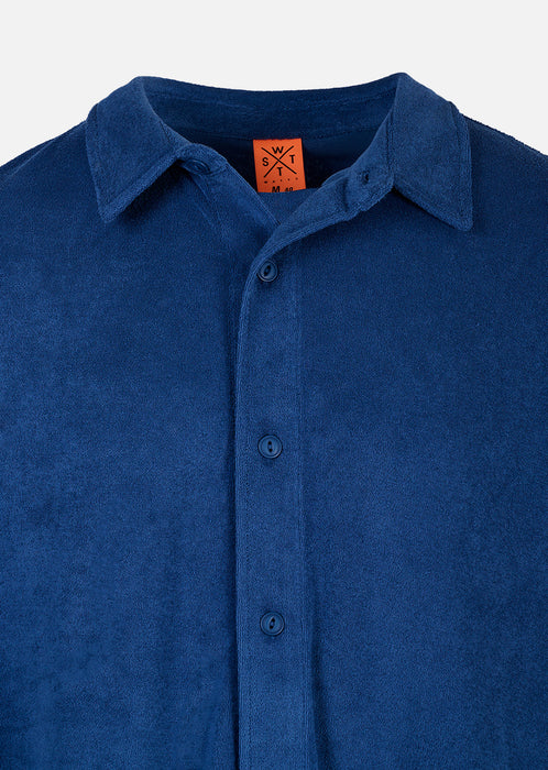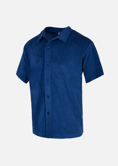 Dieses Hemd aus Bio-Frottee-Baumwolle zeichnet sich durch seine weiche und angenehme Textur aus, die leicht auf der Haut liegt und natürlich atmungsaktiv ist. Sein gerader, leicht lockerer Schnitt garantiert eine fließende und bequeme Silhouette, weder zu eng noch zu weit, ideal für freie Bewegung bei gleichzeitig gepflegtem Aussehen.