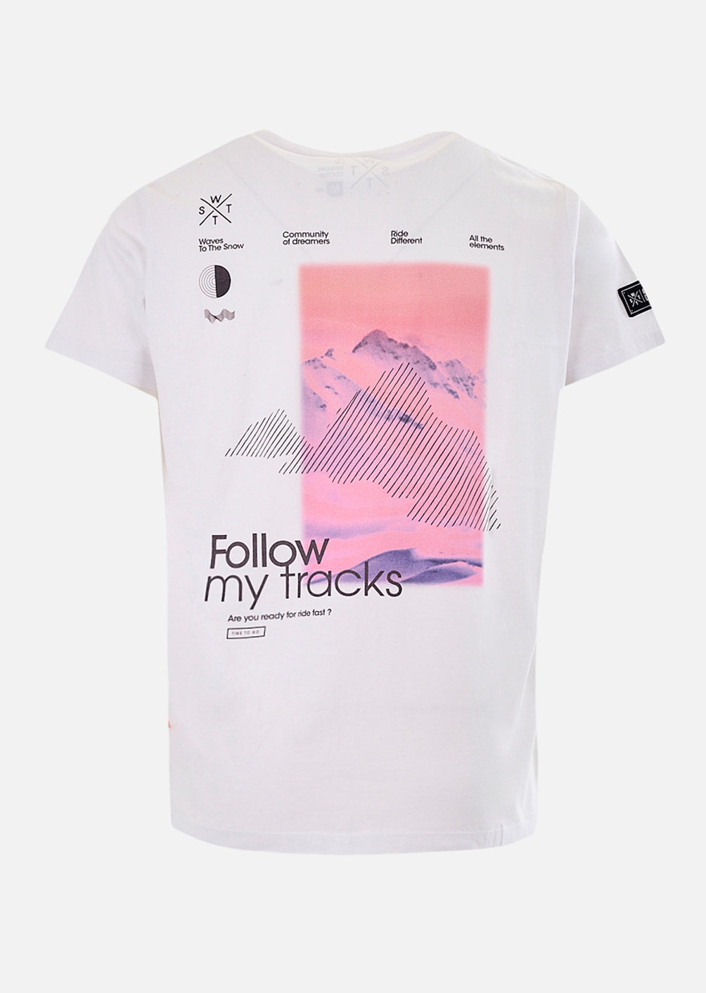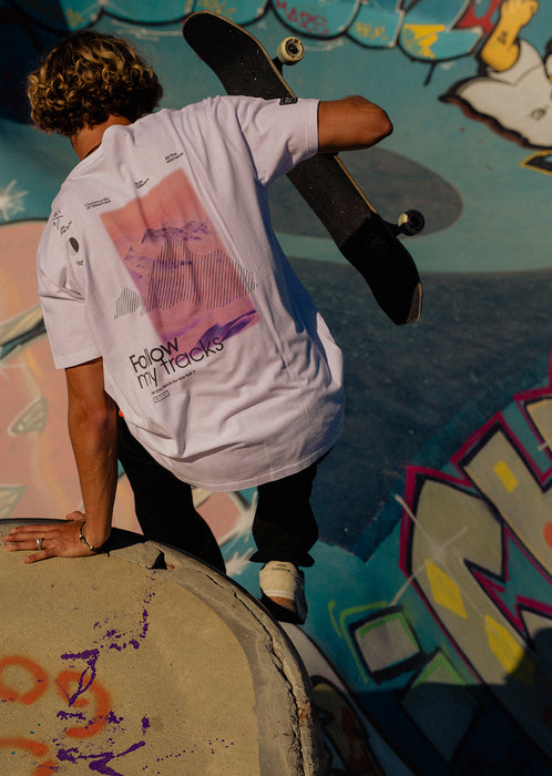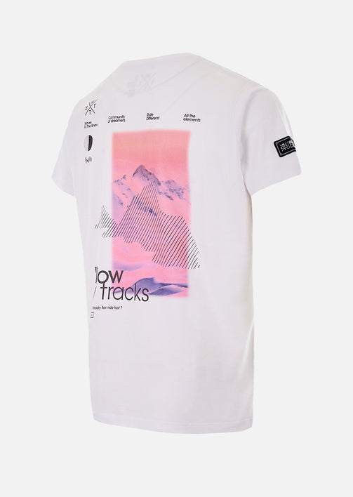 TRACKS Minimalisme alpin, message engagé. Le t-shirt Tracks Blanc affiche un visuel saisissant en contraste total : une photo de montagne teintée de rose fluo accompagnée du message "Follow my tracks". Pensé pour les esprits libres, il allie simplicité et impact graphique. Fabriqué en coton organique doux et respirant, il offre une coupe regular confortable, idéale pour l’outdoor comme pour les moments plus chill. Léger, durable et facile à associer, il s’impose comme une pièce forte dans un vestiaire épuré.