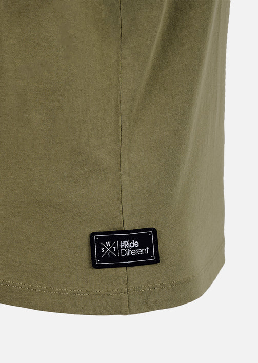 Avec sa teinte Olive facile à porter et son design plus tranché, le t-shirt WATTS03 est la version plus marquée du basique ride. Coupe droite, col rond et manches classiques : tout est là pour un confort sans contrainte, avec ce petit supplément de caractère qui fait la différence.