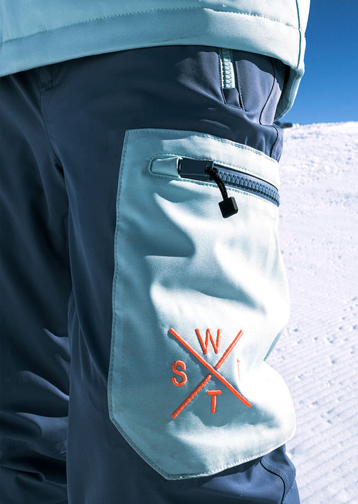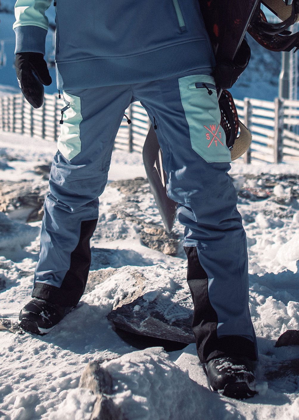 Osez le mélange des genres avec le pantalon de ski X-Elipse Bleu Gris, qui associe une coupe urbaine à des détails techniques haut de gamme. Inspiré des codes du cargo, ce pantalon mixe style et technicité avec brio.