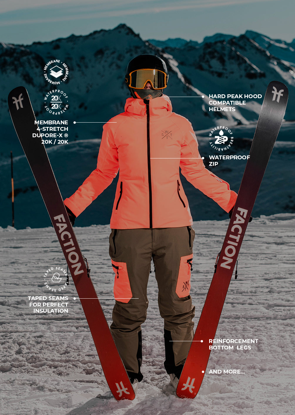 La matière stretch accompagne vos mouvements, que vous soyez en pleine descente ou à l'arrêt sur les bords de piste. La capuche est ajustable en 3 dimensions, s'adaptant à toutes les morphologies et à tous les casques. À l'intérieur, un col en micropolaire douce vient protéger votre menton du froid mordant. Des poches zippées bien pensées permettent de garder votre forfait, votre téléphone ou vos gants à portée de main, en toute sécurité.