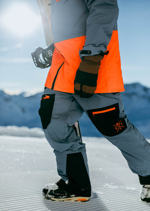 Zips étanches, coutures principales thermosoudées, guêtres pare-neige, renforts anti-abrasion : chaque élément est pensé pour une utilisation intense, que vous soyez en station ou en hors-piste. Ses détails noir et orange ajoutent une touche visuelle dynamique.