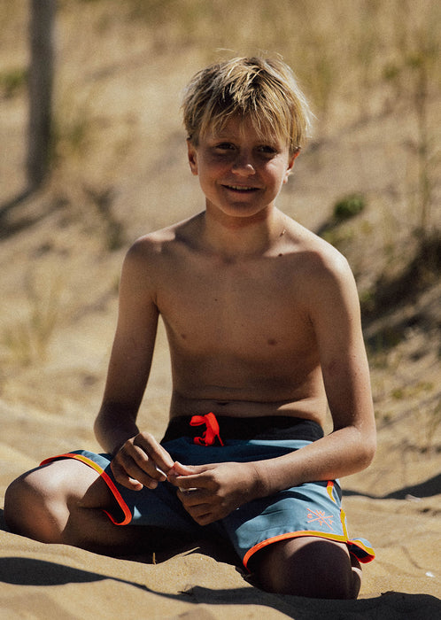 Die blaugrauen Badeshorts von R-Tuubb Junior sind der perfekte Verbündete für aktive Kinder, egal ob sie Spaß im Wasser haben oder im Sand laufen. Mit seinem schlichten, modernen Stil ist es perfekt für jedes Sommerabenteuer. Seine von den Tiefen des Meeres inspirierte Farbe verleiht ihm einen trendigen und zeitlosen Touch.