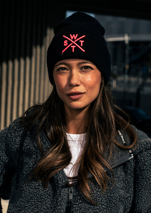 Entdecken Sie die Beanie in Piano Black & Pink . Sie werden das in Neonpink gestickte Logo lieben. Diese Mütze trägt das Wool Mark-Label und besteht zu 50 % aus Merinowolle. Das Label bescheinigt, dass die Wolle unter Berücksichtigung der Umwelt und der Tiere geerntet wird. Diese Mütze verleiht Ihrem Look diesen Winter einen Hauch von Modernität. Es hält Sie von der Stadt bis in die Berge warm.