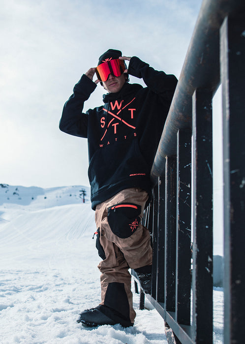 - WATTS-Logo-Stickerei auf Brusthöhe.