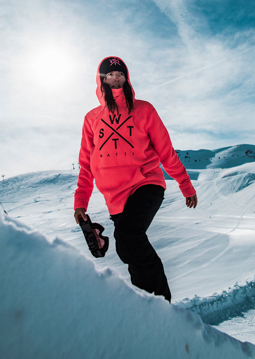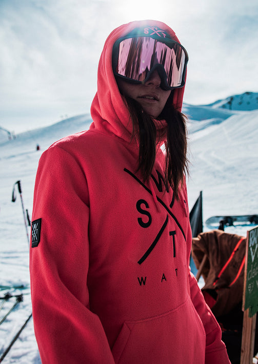 Das Fleece-Sweatshirt X-Track Fluo Pink wird eines unserer kultigen Sweatshirts sein. Dieses Stück besteht zu 70 % aus recyceltem Polyester. Dieser Kapuzenpullover ist dank seines Fleece-Materials sehr angenehm zu tragen und schützt Sie den ganzen Winter über vor der Kälte. Es wurde mit einem weiten Schnitt und atmungsaktivem Material entworfen, damit Sie sich in allen Situationen wohl fühlen. Dieses Fleece-Sweatshirt bietet Ihnen einen Street-Look mit der symbolischen neonpinken Farbe von WATTS.