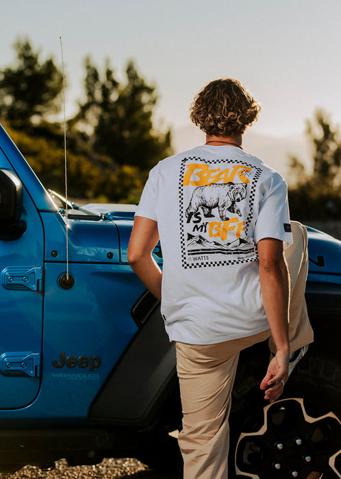 The Budy White T-shirt is the perfect canvas to let your style speak for itself. Minimal on the front, impactful on the back: the "The Bear" motif makes a statement. This bold visual, firmly anchored in the skate universe, is a nod to quiet strength, a reminder that you don't need to overdo it to make an impression.