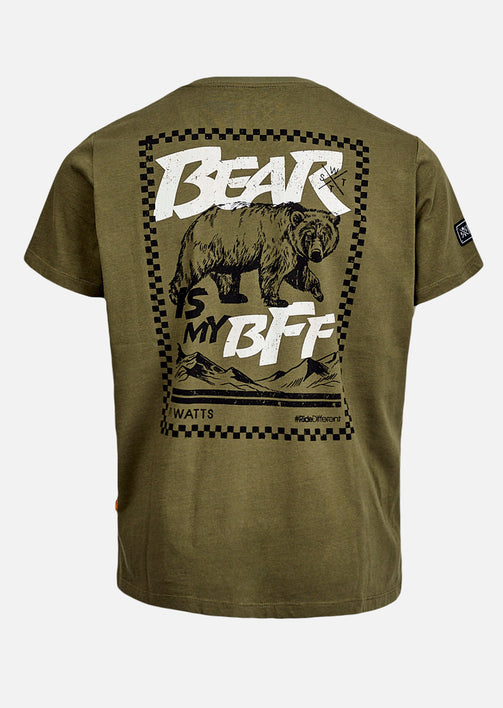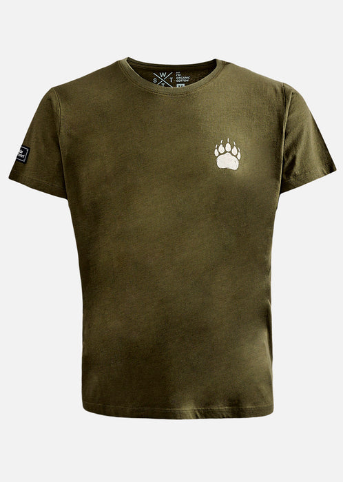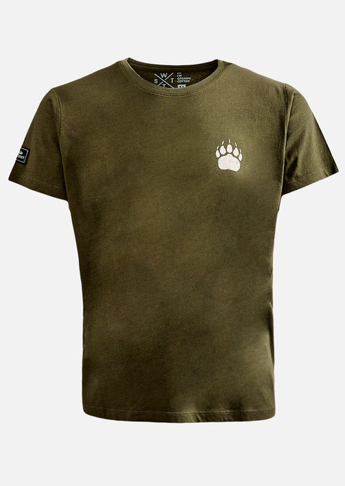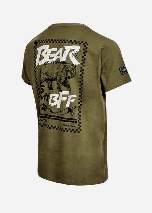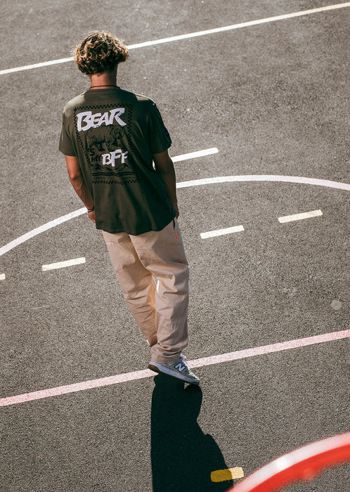 The Budy Kaki T-shirt anchors your style in an urban vibe with an ultra-versatile natural shade. On the back, the "The Bear" motif speaks without raising its voice: a raw and graphic presence, tailored for calm but determined profiles.