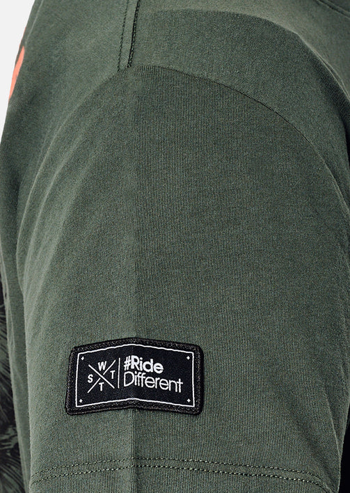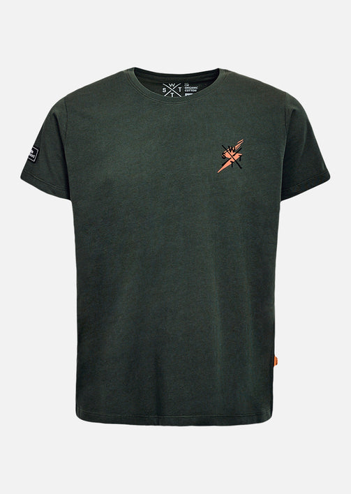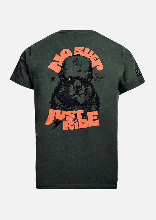 With itsFir Green color and powerful graphic on the back, theOvermint T-shirt embodies the spirit of those passionate about sliding, riding, and adrenaline. Made from organic cotton, it offers a comfortable regular fit. The orange "No Sleep Just Ride" graphic on a dark background creates a striking contrast, while the minimalist logo on the front adds a touch of sobriety. A stylish and responsible T-shirt, perfect for asserting your lifestyle.