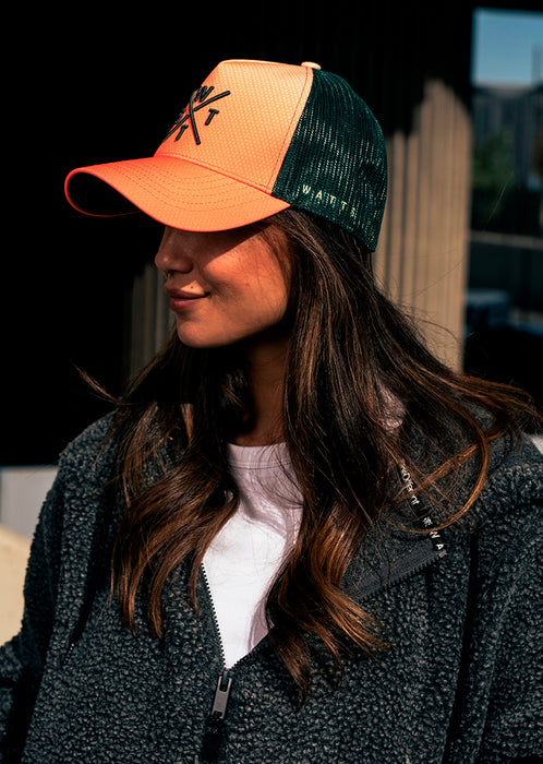 Discover theTokyo Cap - Fluo Coral and Deep Dye Yellow. This cap is very comfortable thanks to its cotton interior fabric and its mesh fabric at the back allowing ventilation. It is adaptable according to the head size thanks to its adjustment system at the back. Its colors are made to match some of our WATTS products for a trendy and refined style.