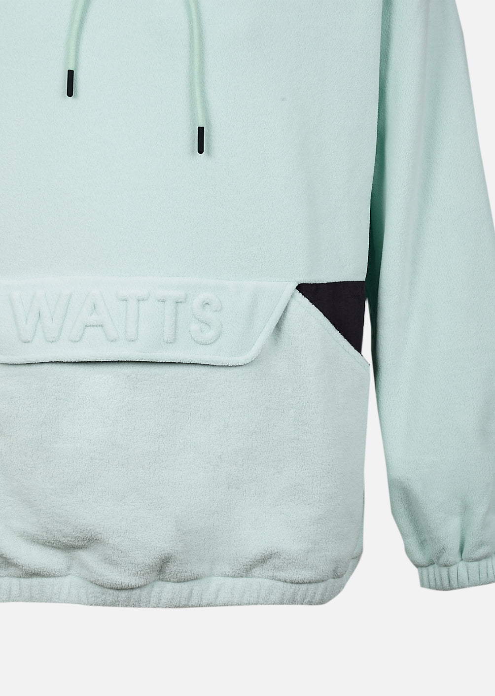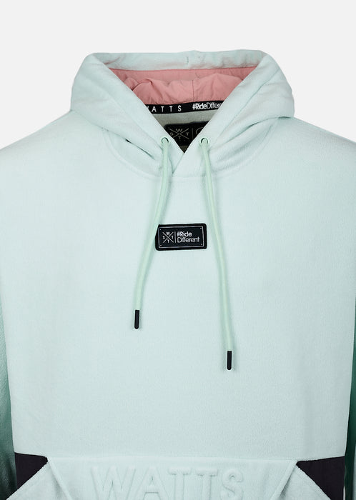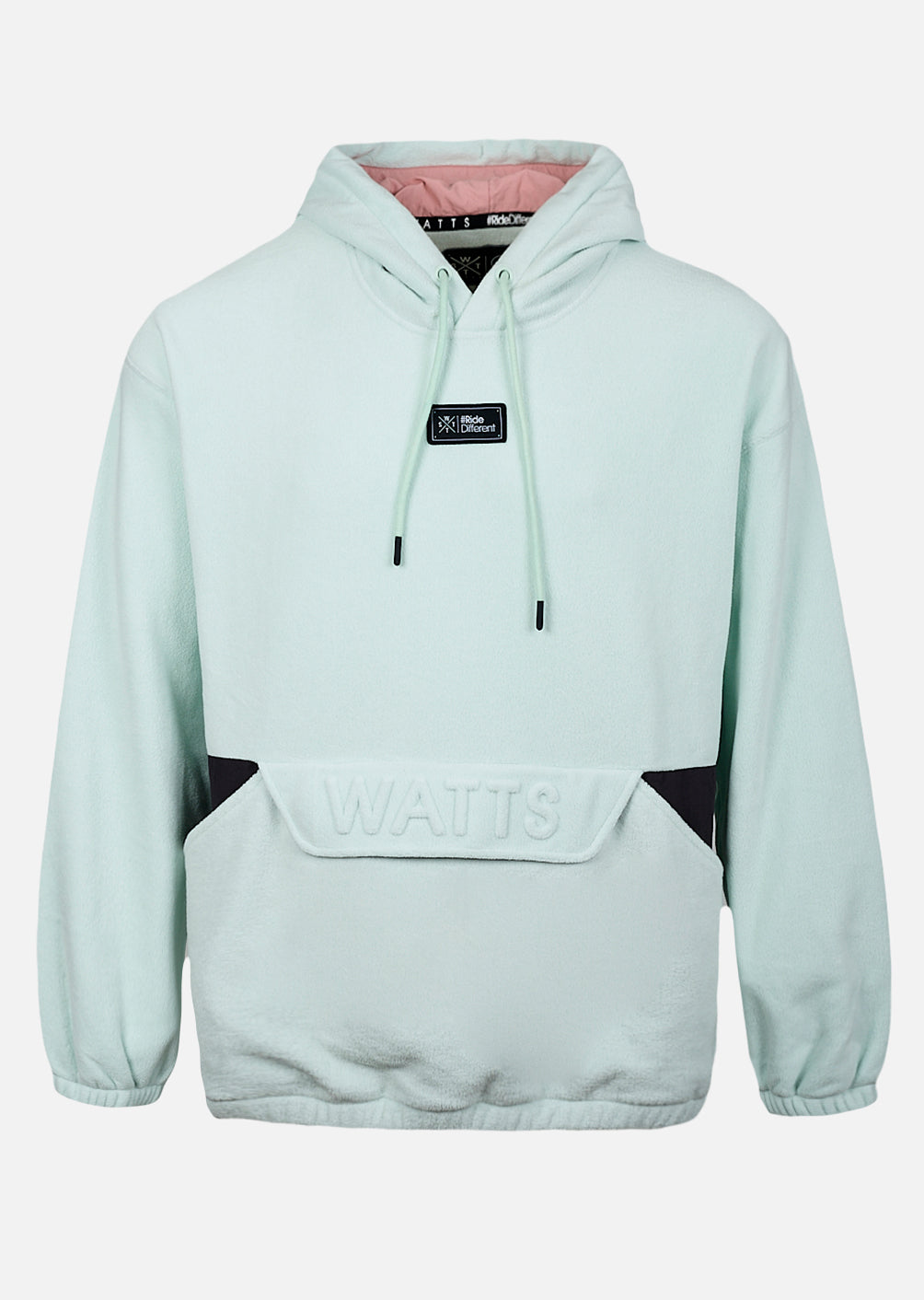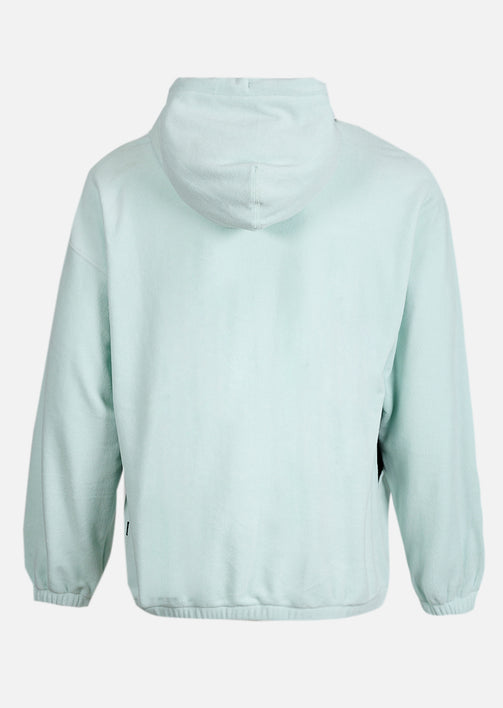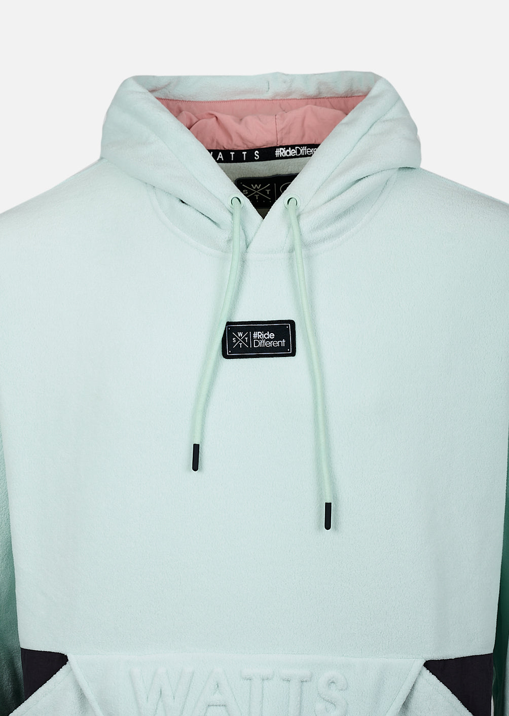 Its lightweight recycled fleece material guarantees thermal comfort and freedom of movement, while the contrasting details (kangaroo pocket, ribbed cuffs, stand-up collar) give it character. Without closure or zip, it focuses on a clean and technical line, designed to alternate naturally between sporting activities and more chilled moments.