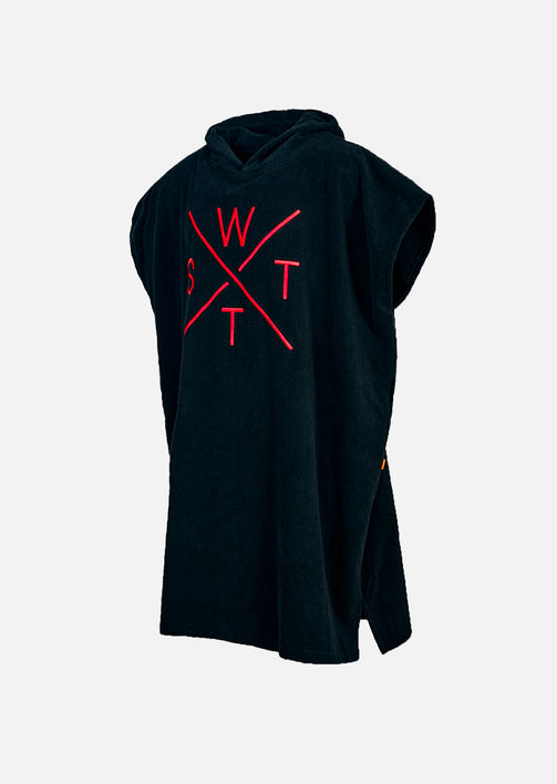 Highlights of the XBEACH Black/Fluorescent Orange Poncho -Made from 100% organic cotton, with loops on one side for a pleasant feel -Excellent absorbency, ideal for quick drying after being in the water -Watts cross logo embroidery on the chest for a distinctive graphic signature -Woven "WATTS" label inserted into the left side seam -Practical cut for quick donning and wind protection -Comfort and relaxation after exertion