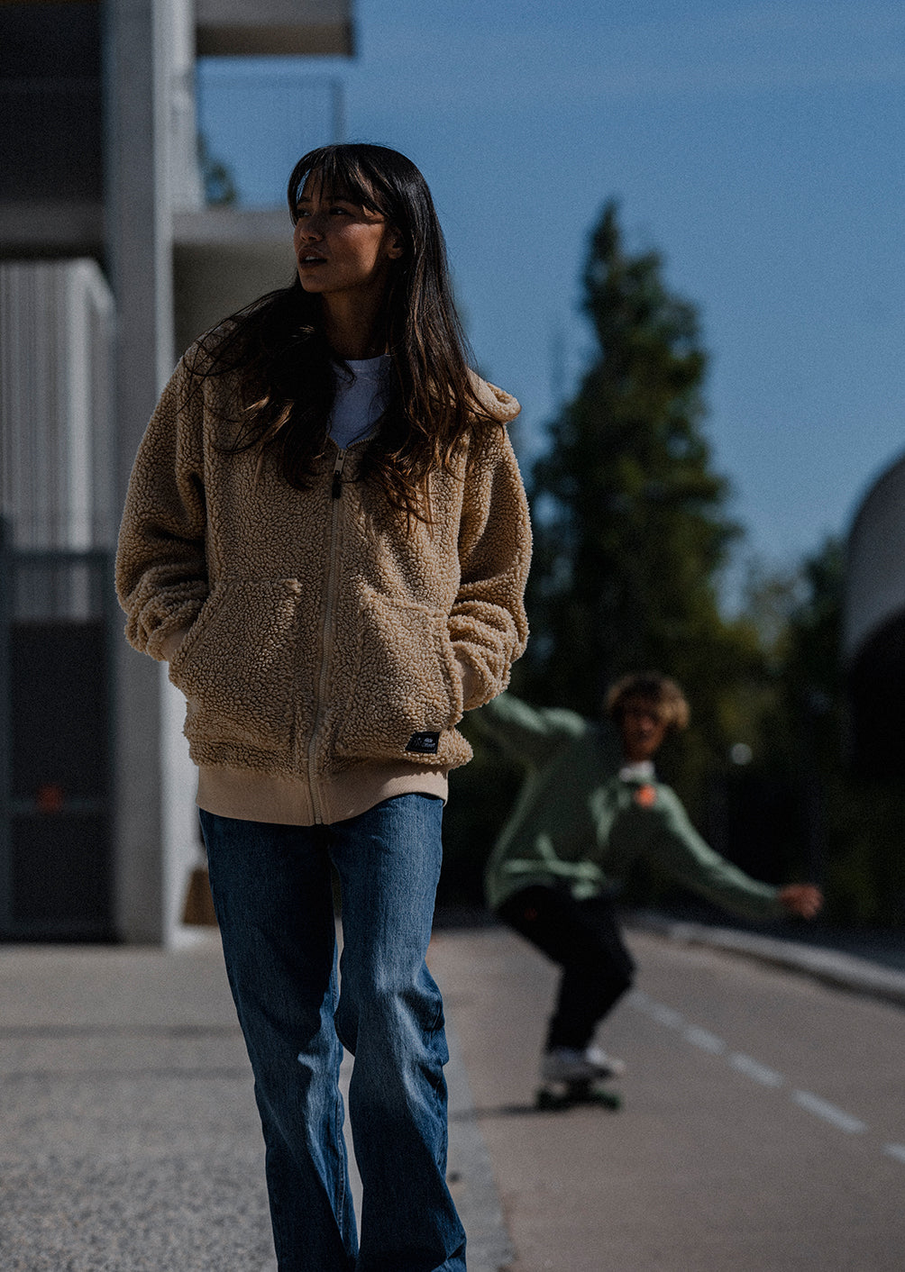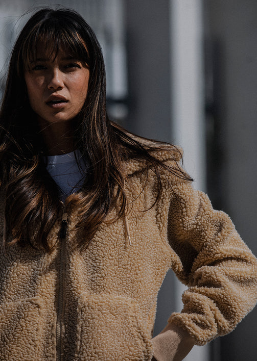 Made from premium recycled sherpa, it offers high-performance thermal insulation while maintaining a soft, pleasant feel. It's the ultimate cocoon piece: warm without being stuffy, comfortable yet structured.
