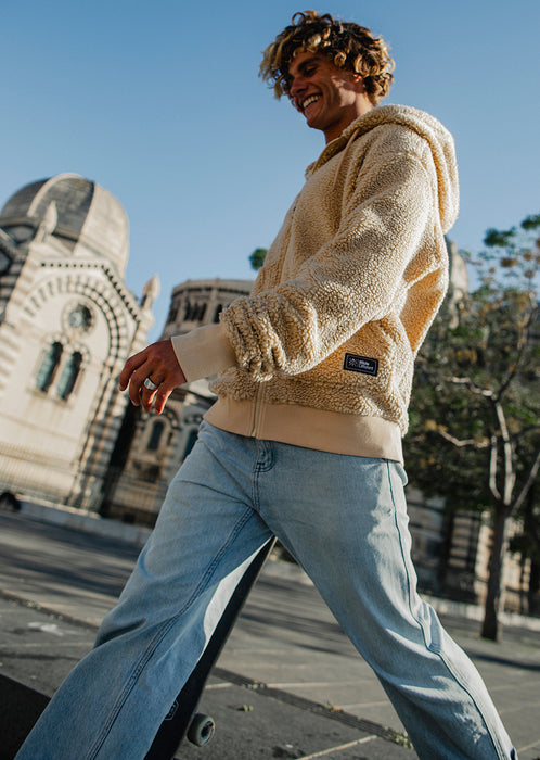 With its covering hood, full zip and oversized patch pockets, it becomes an ally that is as practical as it is aesthetic, from the asphalt to the summits. Easy to layer, this hoodie adapts to all rhythms: ride, chill, or urban walk while claiming a real street attitude.