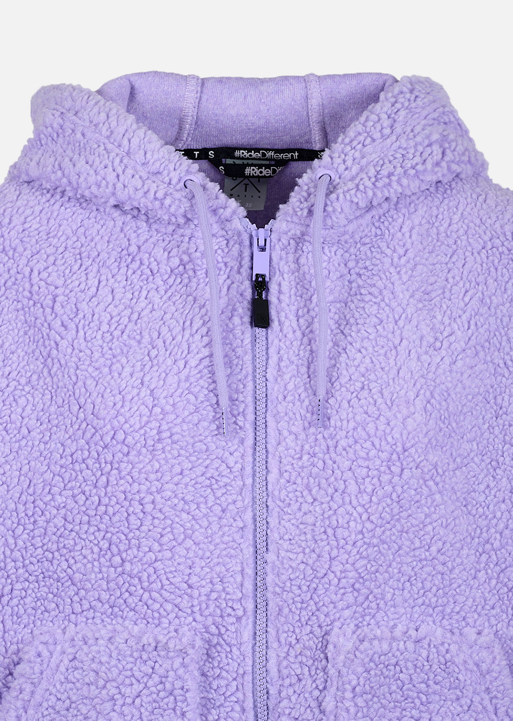 Fabriqué en sherpa recyclé haute qualité, il offre une chaleur maîtrisée et un confort enveloppant, sans jamais alourdir la silhouette. Son toucher duveteux contraste avec son look street affirmé, créant une pièce à la fois technique, cosy et stylée — l’essentiel de la garde-robe urbaine féminine.