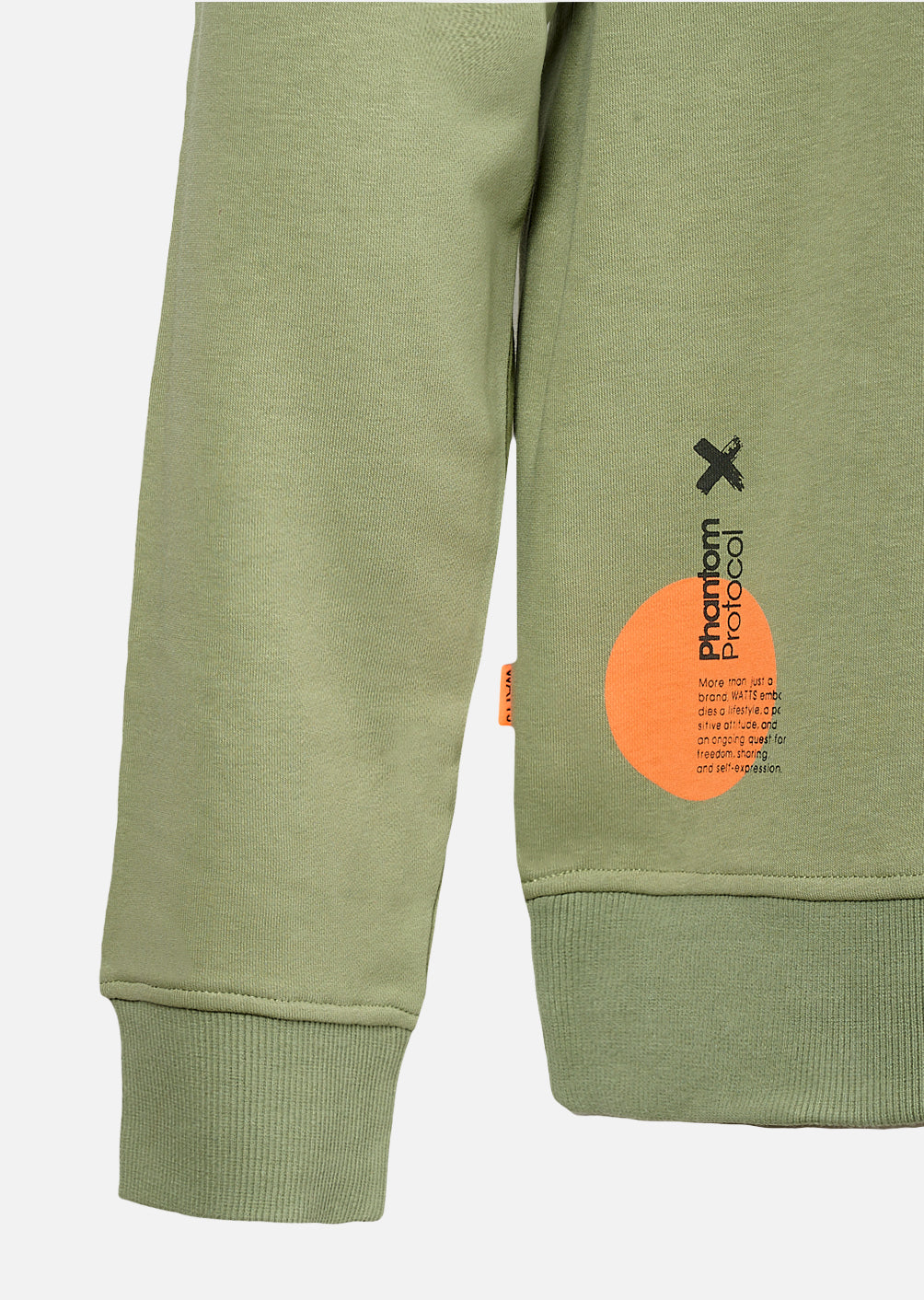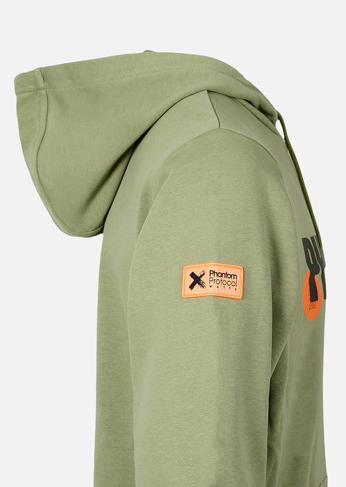 The hoodieX-FALCONSin colorOlive from the Phantom Protocolrangeplays the control card. Inspired by military tones, this hoodie reinterprets streetwear through a more calm but never neutral aesthetic. Olive is the color of those who observe before acting, who advance quietly but always with impact.