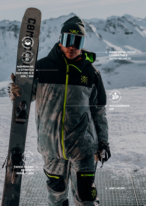 The X-Gamma Grey Tie & Dye & Fluo Green embodies this crossover between techwear design and alpine performance. Designed for those who want to go hard, it will appeal to riders who love layering and are addicted to precision.