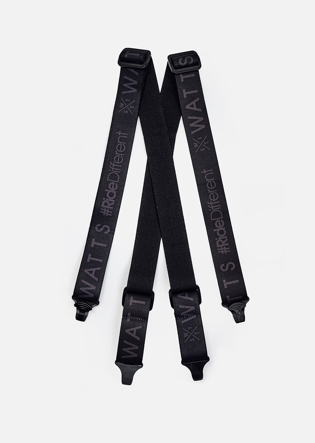 - Elastic, adjustable and personalized WATTS suspenders for ski pants
