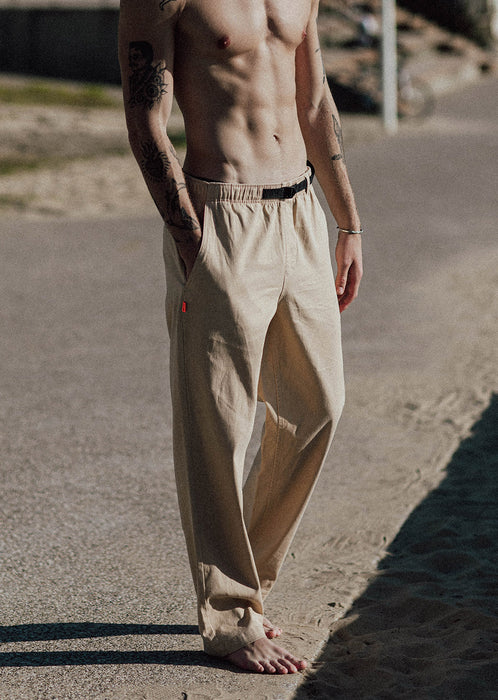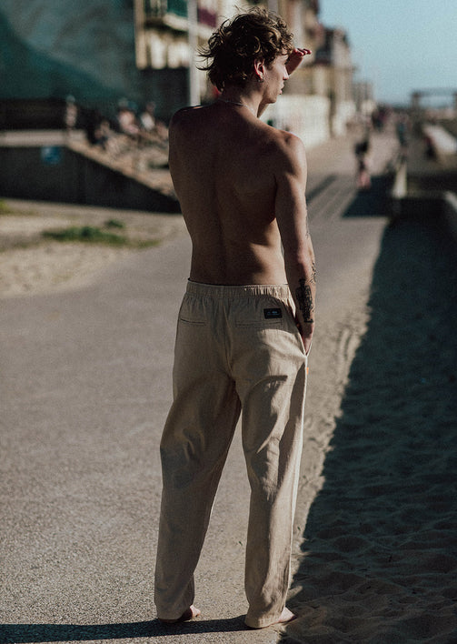 X-STONE Beige Organic Cotton Pants : a comfortable model for every day. Discover the X-STONE Beige organic cotton pants, an essential piece for your summer wardrobe. Designed to offer optimal comfort, these pants combine lightness, elasticity and relaxed style. Made with a blend of 98% cotton and 2% elastane, they benefit from 4 WAY stretch technology that allows you great freedom of movement, while remaining elegant and modern, for total ease and a perfect fit with every move -Comfort fit: Designed to fit your shape without compromising freedom of movement -Elasticated waist with integrated WATTS belt: For optimal support and a slimmer silhouette -Color: Natural beige, ideal for summer and basic looks at the same time -Lightweight: Perfect for hot days, providing breathability and comfort all day long It can be worn both during the day for a casual outfit and during your sports outings,