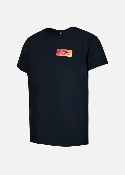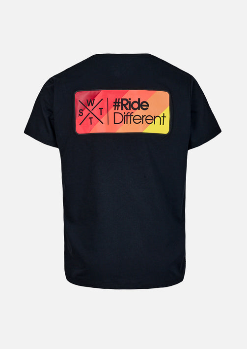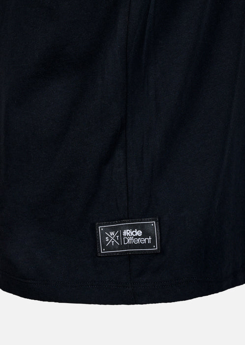 À l’avant, un marquage rectangulaire discret positionné côté gauche structure la pièce avec subtilité. À l’arrière, le large logo graphique “#RideDifferent” affirme l’identité street de la collection. Le patch tissé WATTS cousu en bas, côté droit, signe le produit avec précision.