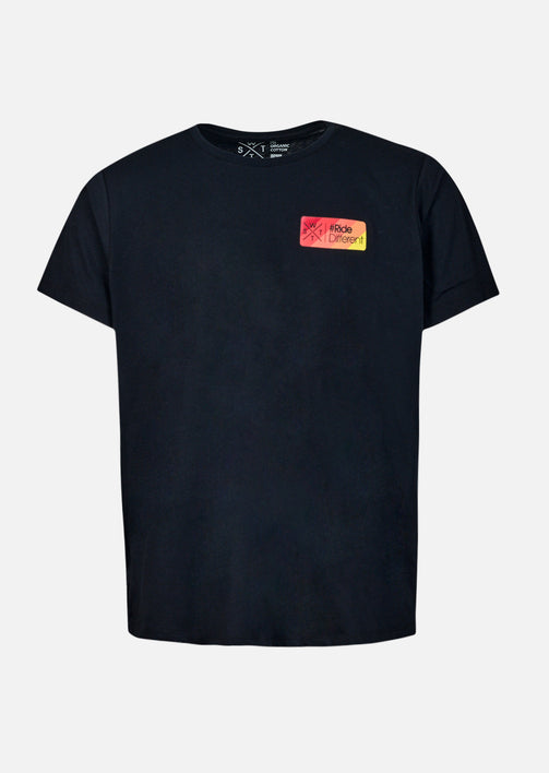 Le T-shirt XVIBES en FULL BLACK joue sur un contraste fort entre sa base noire intense et son visuel dégradé rouge/orange “Ride Different” placé au haut du dos. Une présence visuelle nette, pensée pour ceux qui veulent marquer les esprits sans en faire trop.