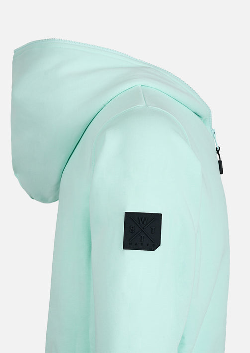 Avec son zip intégral, ajustez votre look selon le moment. Sa matière douce en coton organique et polyester recyclé vous assure un confort constant, que vous soyez en mouvement ou en pause. Capuche bien coupée, poches kangourou et broderies discrètes ajoutent à sa finition clean.