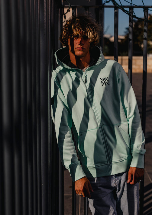BLUNT Fraîcheur urbaine, attitude cool. Le sweat zippé Blunt Vert Clair ajoutez une touche lumineuse et originale à votre garde-robe. Idéal pour les beaux jours ou pour égayer une tenue plus sobre, il combine légèreté et fonctionnalité.