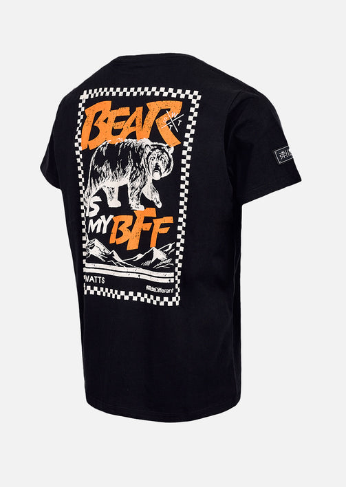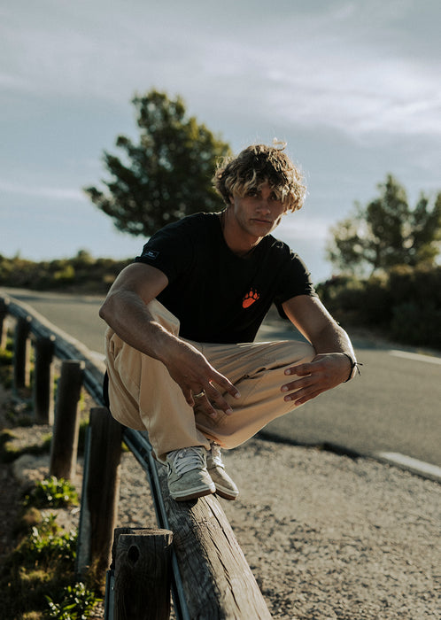 Le t-shirt Budy Noir coche toutes les cases du tee incontournable : couleur passe-partout, coupe droite, confort haut niveau. Mais son vrai plus, c’est son dos : le motif “The Bear” y déploie toute sa puissance graphique, façon marqueur visuel à part entière.