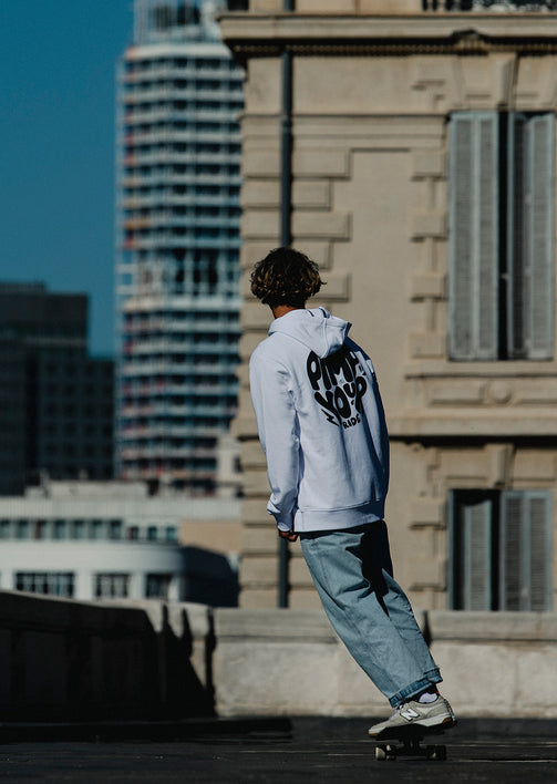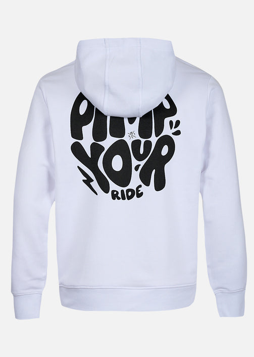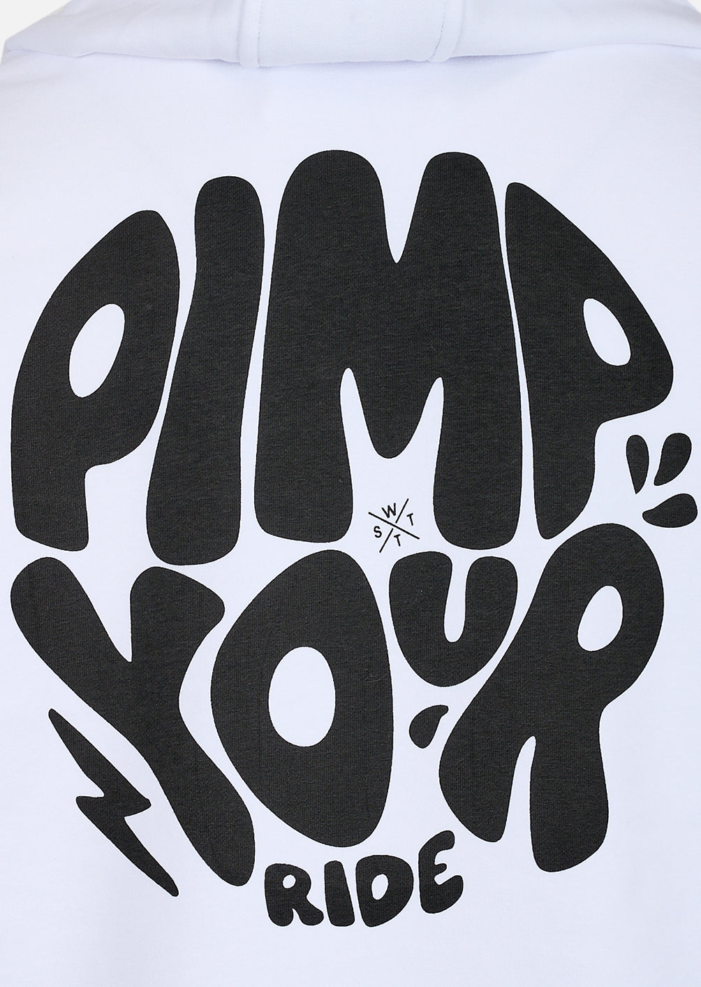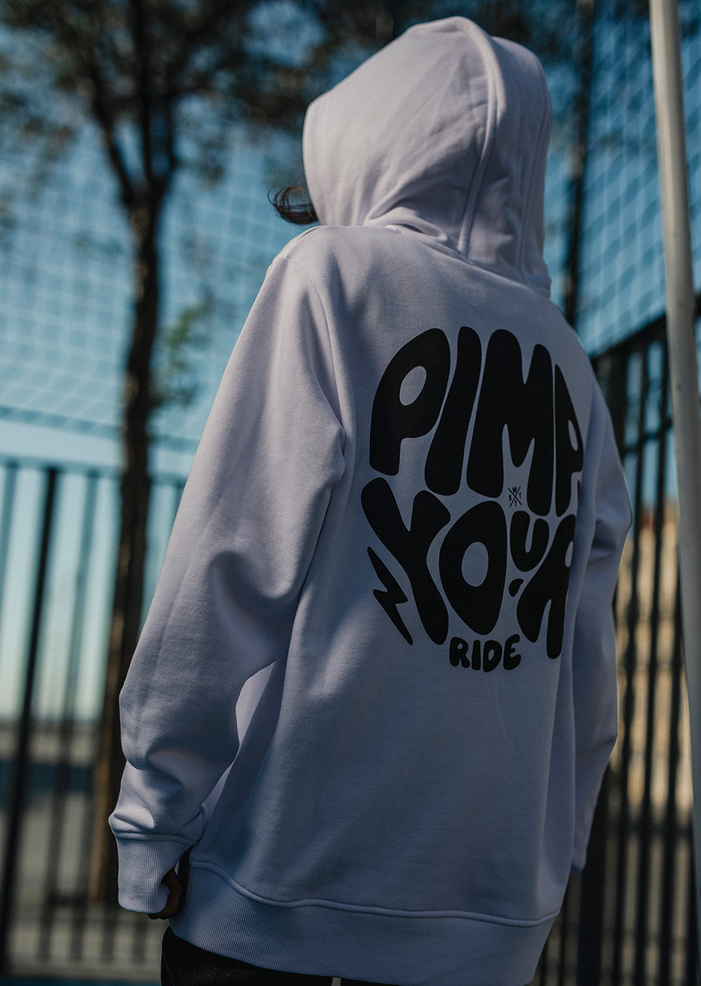 Conçu dans un mélange doux de coton biologique et de polyester recyclé, ce sweat assure respirabilité et légèreté, parfait pour les rythmes urbains actifs. Dans le dos, l’imprimé "PIMP YOUR RIDE" contraste avec le blanc éclatant, pour une signature visuelle marquante et rebelle, dans l’esprit street.