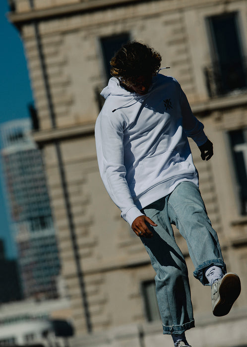 Le hoodie Crush Blanc impose une esthétique minimaliste forte, avec une silhouette épurée et sans zip qui souligne un style direct, sobre et assumé. Sa teinte blanche, nette et lumineuse, permet de l’intégrer facilement à toutes les tenues du quotidien, que ce soit en layering ou en pièce maîtresse.