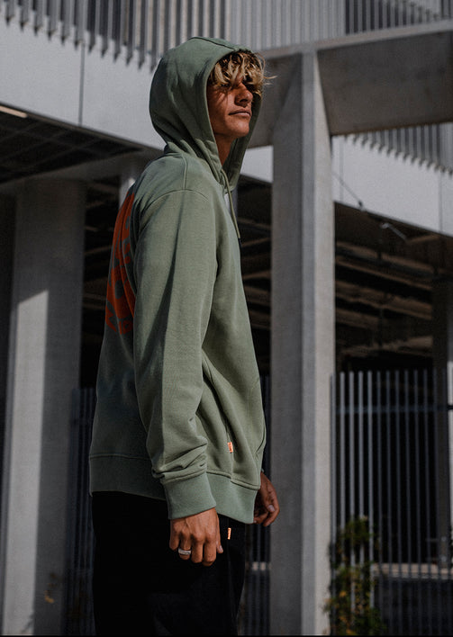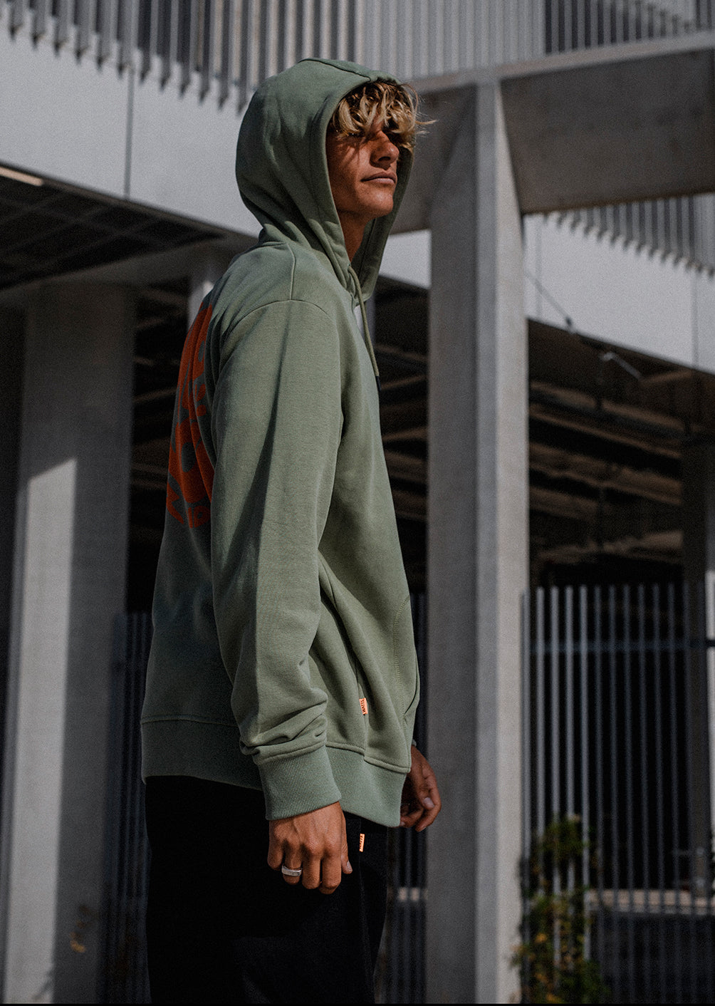 Le hoodie Crush Olive révèle une allure puissante et naturelle, grâce à sa teinte verte profonde relevée de détails orange fluo. Ce sweat sans zip, à la coupe fluide, est pensé pour accompagner vos mouvements avec style et sobriété.