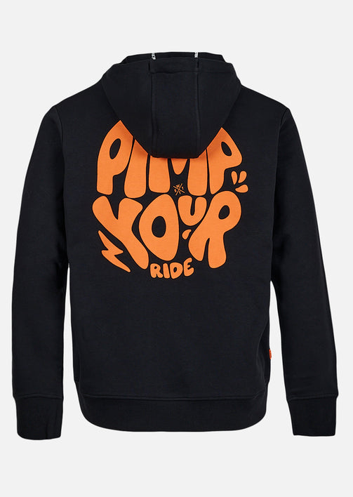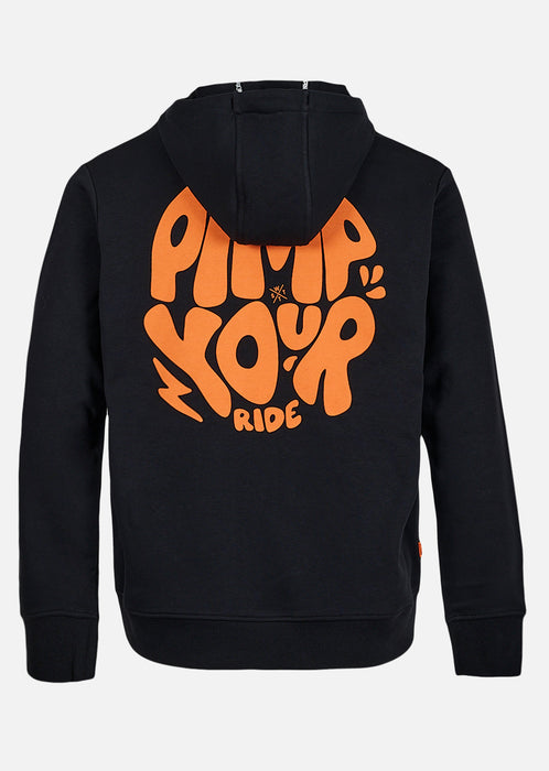 La matière, un mélange de coton biologique et de polyester recyclé, assure chaleur, confort et bonne respirabilité, parfaite pour accompagner un quotidien actif. Au dos, le grand motif "PIMP YOUR RIDE" en orange fluo affirme l’ADN street et le parti pris graphique du hoodie, avec un rendu visuel percutant à chaque mouvement.