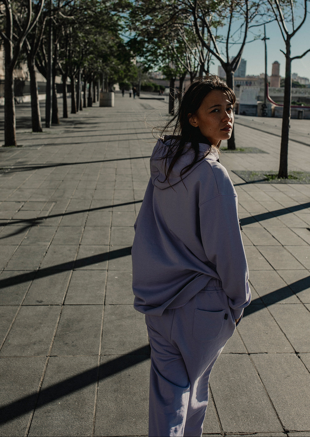 Sa coupe droite au tombé fluide est idéale pour alterner entre moments off et sorties actives, sans jamais sacrifier le confort. La matière en molleton French Terry non gratté est légère, respirante, et ultra agréable sur la peau pour une sensation de légèreté du matin au soir.