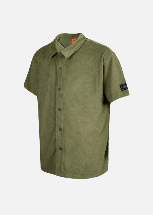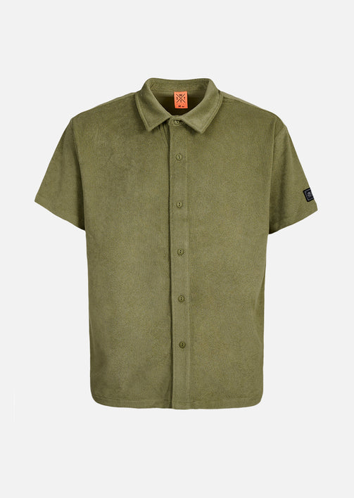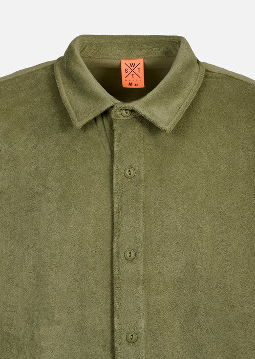 Côté style, cette pièce couleur olive joue sur la frontière entre streetwear et surfwear. Elle s’associe facilement avec un jean, un short ou un pantalon cargo pour un look masculin, urbain et décontracté. Les six boutons classiques sur le devant, le patch tissé discret sur la manche gauche et l’étiquette drapeau WATTS insérée dans la couture côté droit signent cette chemise avec subtilité et personnalité.