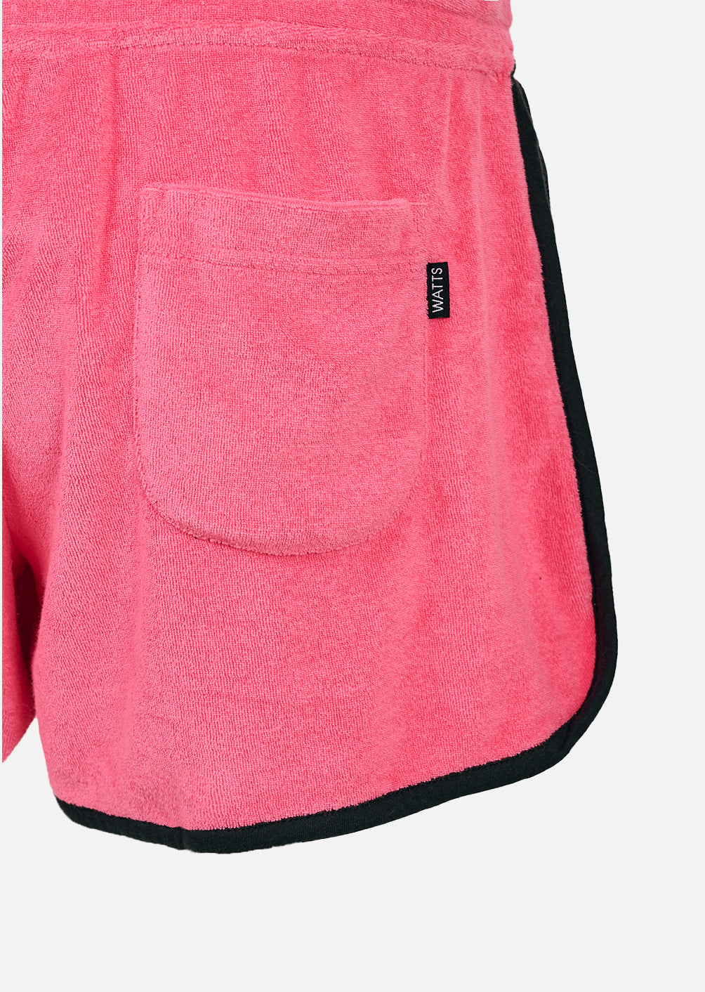 Sa taille élastique épouse naturellement la silhouette et se règle grâce à son lien personnalisé WATTS, véritable détail signature. Les poches latérales intégrées conservent une ligne fluide, tandis que la poche plaquée au dos côté gauche ajoute une fonctionnalité discrète.