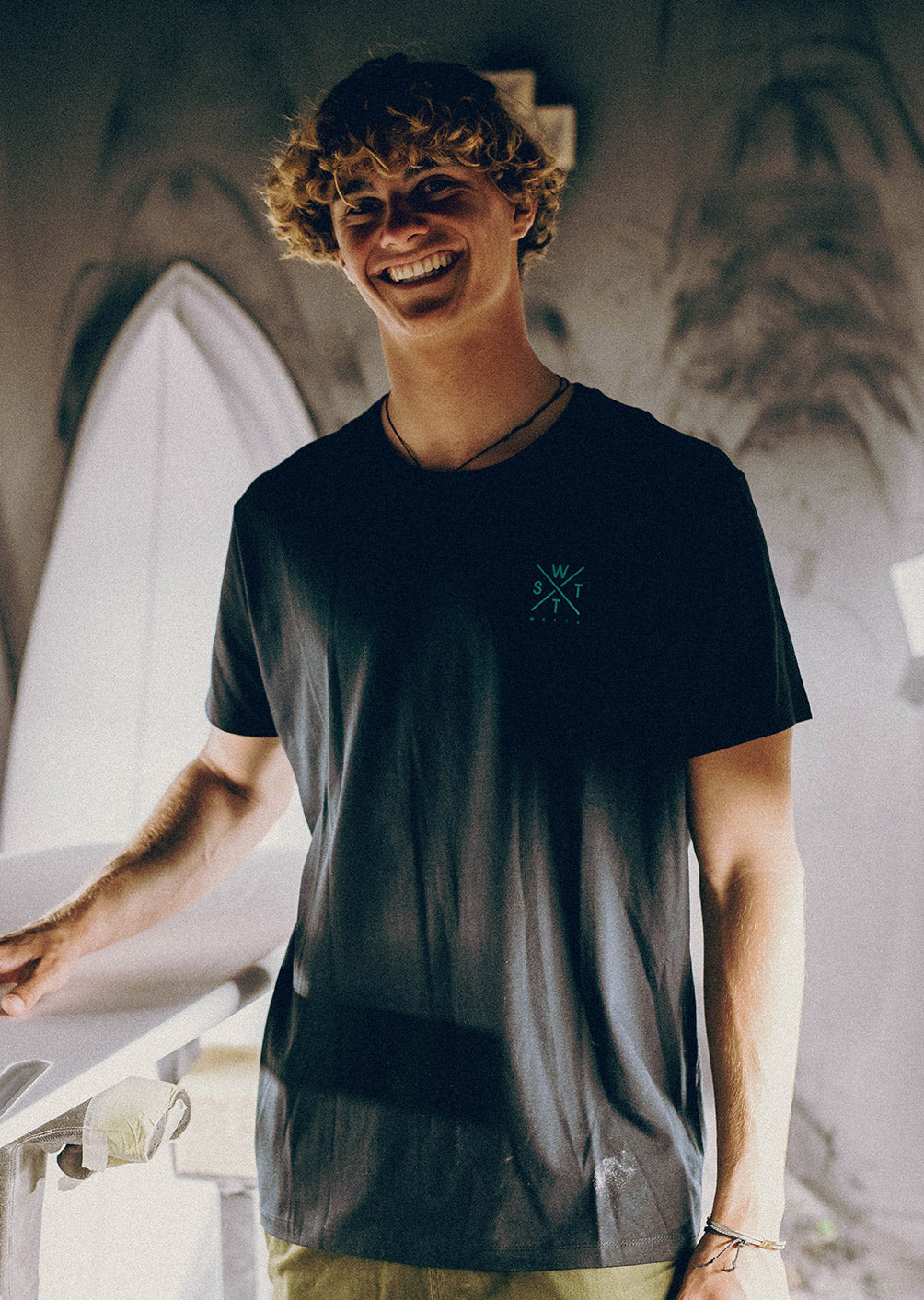 Côté coupe, rien n’est laissé au hasard : droite et équilibrée, elle garantit une liberté de mouvement totale, tout en offrant un fit impeccable. Son design épuré à l’avant, avec une sérigraphie subtile sur la poitrine, laisse place à un dos percutant : un imprimé turquoise éclatant, qui capte l’énergie et le dynamisme des riders.