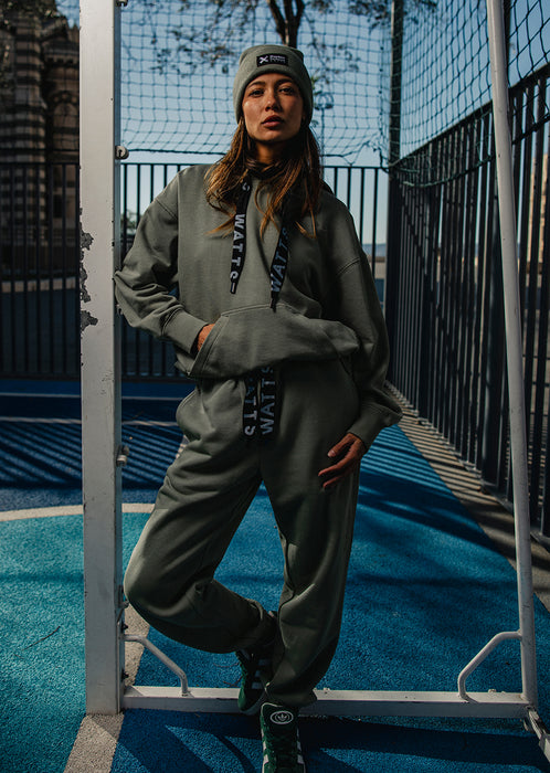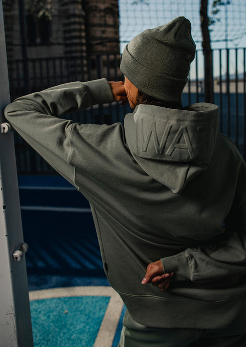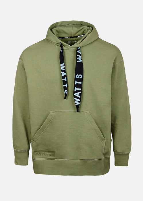 Pensé dans les moindres détails, le Tyers Olive est équipé d’une poche kangourou centrale, de bords-côtes aux poignets et à la taille pour un maintien juste, et d’une étiquette discrète WATTS sur le côté pour signer une pièce aussi sobre qu’efficace.