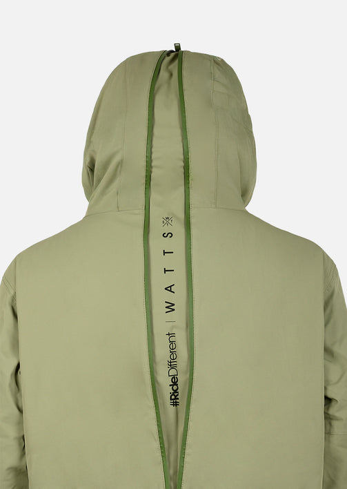 Les détails sont là, mais rien n’est laissé au hasard : un zip arrière pure WATTS ton sur ton, des poches poitrines dissimulées, des rabats à pressions, une poche forfait bien placée, une grande poche mesh intérieure pour les essentiels. À l’extérieur, la ligne est épurée ; à l’intérieur, tout est prêt pour le ride.