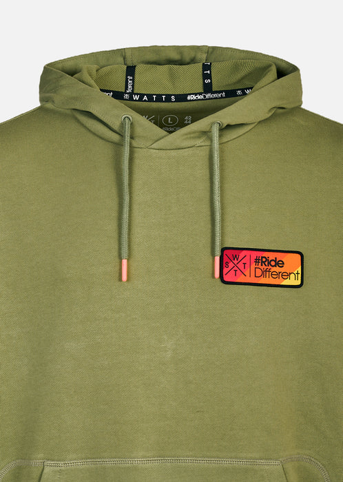 XMISSION L’allure urbaine inspirée des tonalités naturelles En coloris Olive, le sweat à capuche XMISSION adopte une esthétique plus organique et contemporaine. Ce vert profond, à la fois sobre et actuel, apporte du relief au vestiaire et change du classique noir tout en restant facile à associer. Le patch tissé poitrine contraste subtilement avec la base olive et signe la pièce avec caractère.