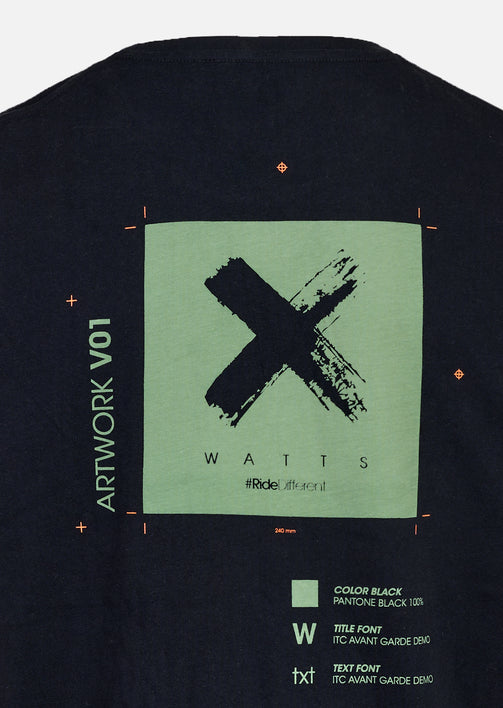 - Patch tissé "WATTS" appliqué sur couture côté droit
