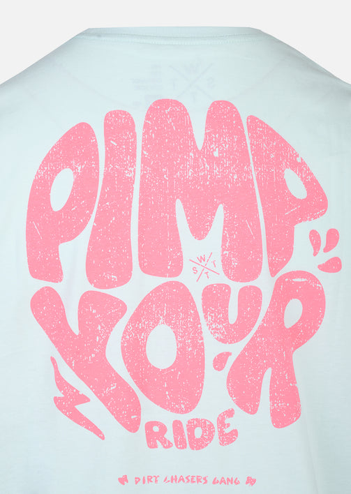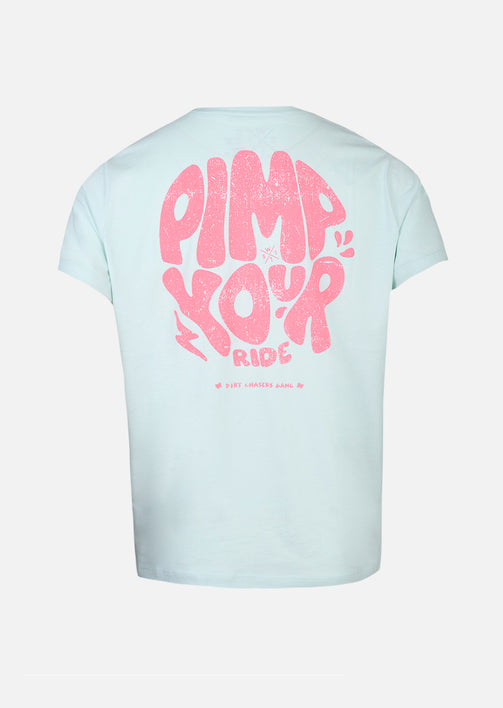 T-shirt XWEST Apportez une touche de fraîcheur à votre dressing avec le T-shirt en coloris ICE BLUE, une nuance douce et lumineuse qui modernise instantanément votre silhouette. Son ton clair aux accents minéraux offre une alternative originale aux basiques traditionnels. Élégant et facile à assortir, il se marie parfaitement avec un denim brut, un short beige ou un pantalon noir pour un look casual maîtrisé. À l’avant, un marquage discret signe la pièce avec subtilité. Au dos, le visuel graphique “Pimp Your Ride” en contraste vient dynamiser l’ensemble et affirmer son identité.