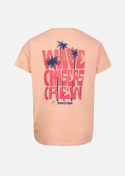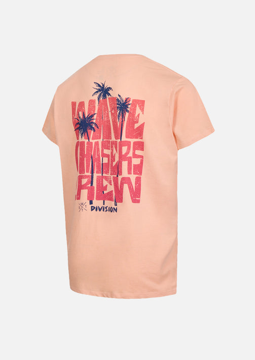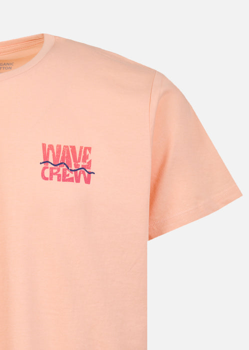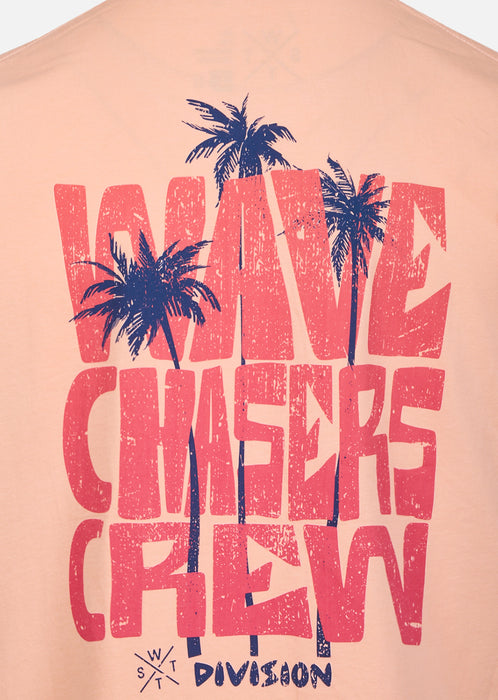 Un basique couleur Pêche, stylé et responsable, parfait pour composer des looks estivaux confortables et modernes. En coton biologique, ce T-shirt offre une matière légère, souple et respectueuse de l’environnement. Naturellement respirant, le tissu bénéficie également des propriétés antibactériennes du coton pour une fraîcheur agréable en toutes circonstances. Le motif discret sur la poitrine et le grand visuel graphique au dos palmiers soulignent le caractère du modèle, tandis que l’étiquette drapeau WATTS cousue en bas de la couture gauche signe la pièce avec discrétion. Sa coupe droite garantit un tombé naturel et un confort optimal tout au long de la journée. Le col rond en tricot côtelé conserve sa forme, et la bande de renfort intérieure ton sur ton assure des finitions propres et durables.