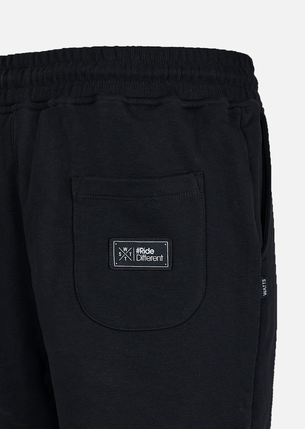 - Etiquette drapeau "WATTS", insérée dans la couture côté Droite